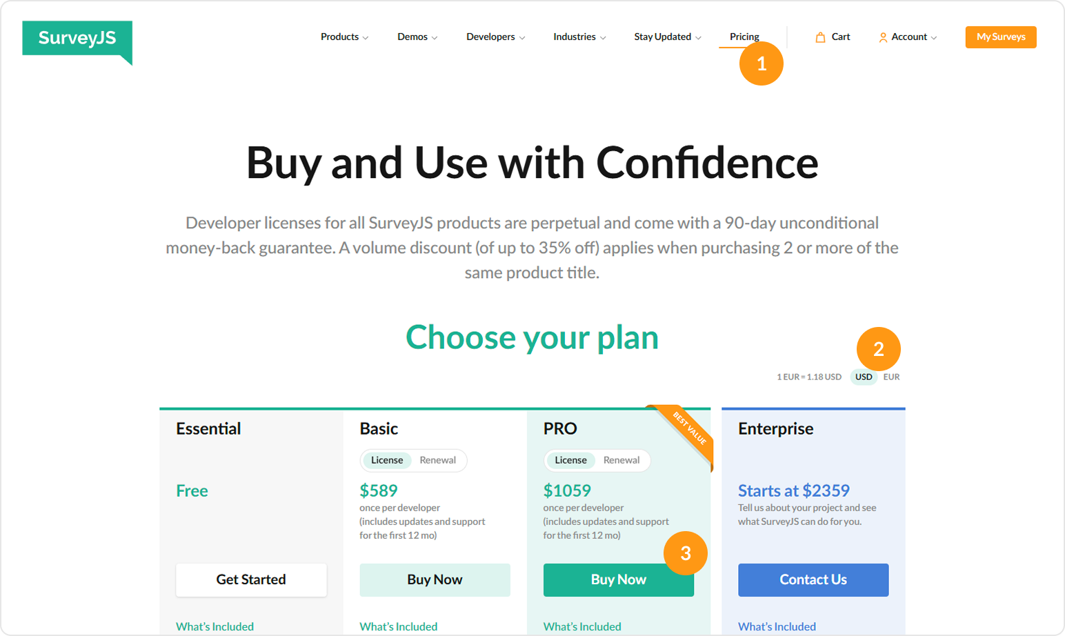 There are two main ways to pay for SurveyJS software: